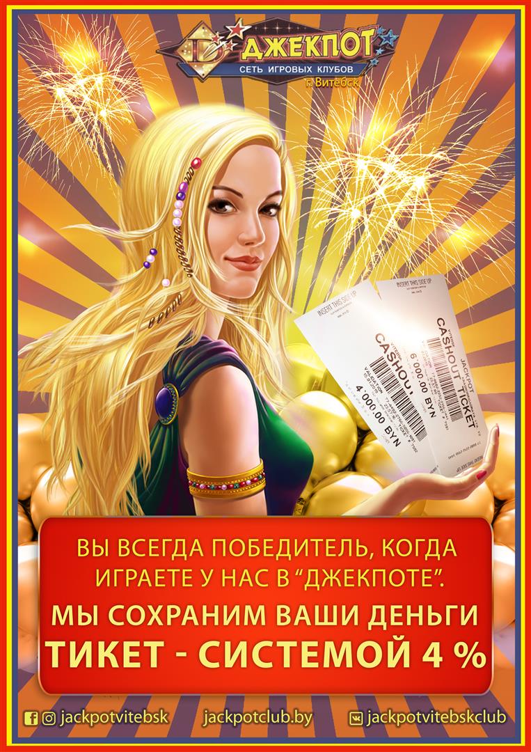 Игровой клуб «Джекпот» высоко ценит своих гостей, поэтому специально для Вас есть Турнир 1/10 в клубе «Джекпот» г.Витебска. А также мы проводим разнообразные розыгрыши, акции, турниры на слот-аппаратах. Турнир 1/10 в клубе «Джекпот» Витебска — Турнир проводится ЕЖЕДНЕВНО, кроме СУББОТЫ! — Начало регистрации в 20.30 — Начало турнира в 21.00…